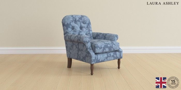 6.12.1 Buy Cambridge Button Back by Laura Ashley Armchair Tamara Dusky Seaspray Blue Medium Turned - Chestnut from the Next UK online shop Click here to use our accessible website