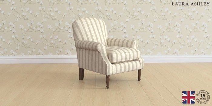 6.12.1 Buy Cambridge by Laura Ashley Armchair Kinsham Stripe Natural Medium Turned - Chestnut from the Next UK online shop Click here to use our accessible website
