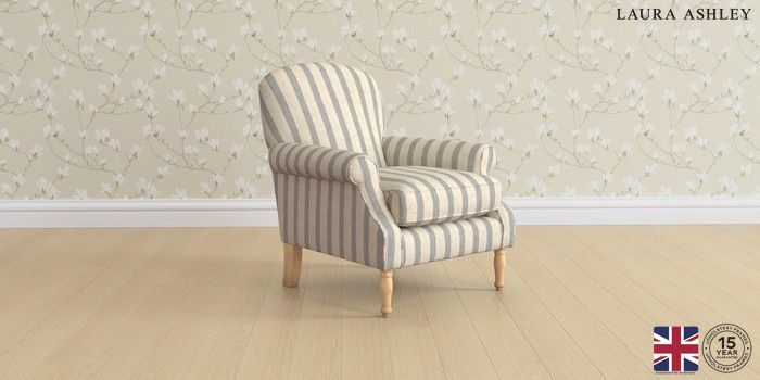 6.12.1 Buy Cambridge by Laura Ashley Armchair Kinsham Stripe Seaspray Blue Medium Turned - Light Oak from the Next UK online shop Click here to use our accessible website