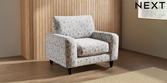 7.3.1 Buy Campbell Armchair Relaxed Linen Look Print Woodblock Floral Blue High Leg - Dark from the Next UK online shop