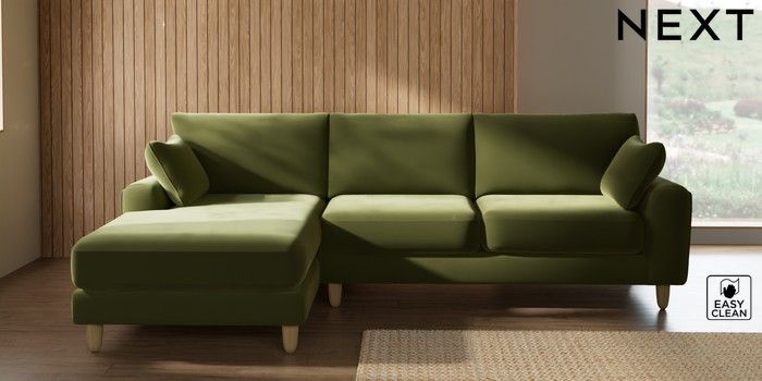 7.2.6 Buy Campbell Medium Sofa Chaise - Left Hand Plush Velvet Easy Clean Mid Olive Green High Leg - Light from the Next UK online shop Click here to use our accessible website