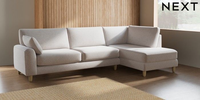 7.2.6 Buy Campbell Large Corner Chaise - Right Hand Multi Weave Oyster High Leg - Light from the Next UK online shop Click here to use our accessible website
