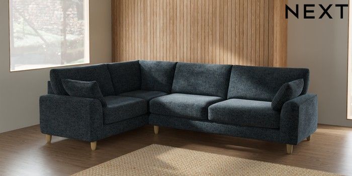 7.2.6 Buy Campbell Large Corner Sofa - Left Hand Chunky Chenille Dark Navy Blue High Leg - Light from the Next UK online shop Click here to use our accessible website