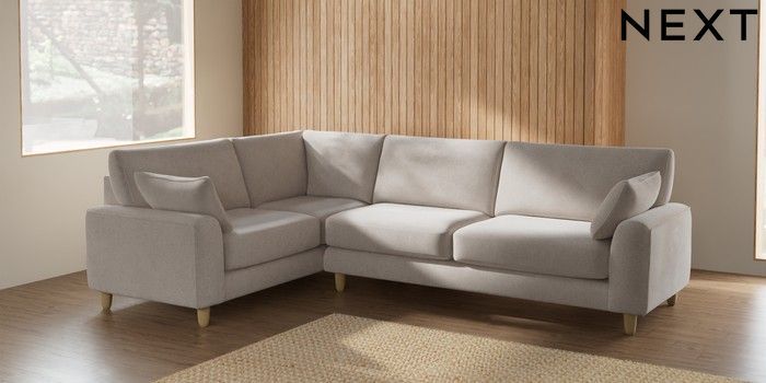 7.2.6 Buy Campbell Large Corner Sofa - Left Hand Chunky Chenille Oyster High Leg - Light from the Next UK online shop Click here to use our accessible website