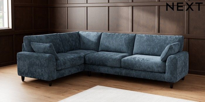 7.2.6 Buy Campbell Large Corner Sofa - Left Hand Distressed Velour Midnight Blue High Leg - Dark from the Next UK online shop Click here to use our accessible website