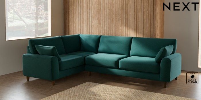 7.2.6 Buy Campbell Large Corner Sofa - Left Hand Fine Chenille Easy Clean Dark Juniper Green High Leg - Mid from the Next UK online shop Click here to use our accessible website