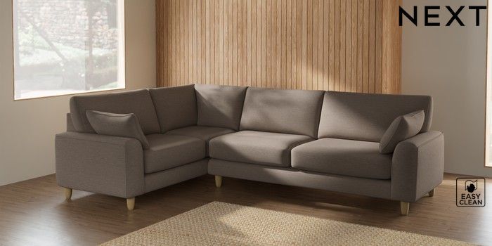 7.2.6 Buy Campbell Large Corner Sofa - Left Hand Fine Chenille Easy Clean Mid Taupe Brown High Leg - Light from the Next UK online shop Click here to use our accessible website