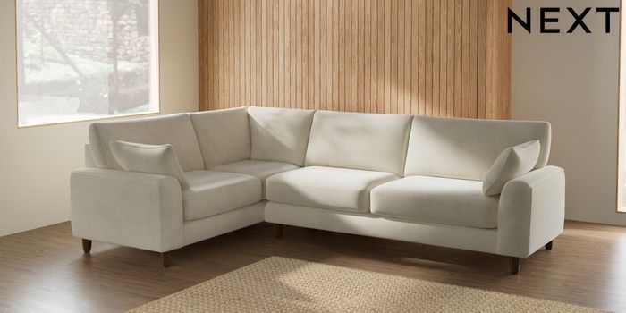 7.2.6 Buy Campbell Large Corner Sofa - Left Hand Luxe Chenille Oyster High Leg - Mid from the Next UK online shop Click here to use our accessible website