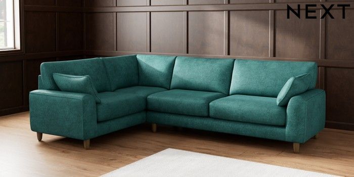 7.2.6 Buy Campbell Large Corner Sofa - Left Hand Plush Chenille Dark Teal Green High Leg - Mid from the Next UK online shop Click here to use our accessible website