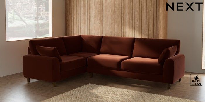 7.2.6 Buy Campbell Large Corner Sofa - Left Hand Plush Velvet Easy Clean Ginger Orange High Leg - Mid from the Next UK online shop Click here to use our accessible website