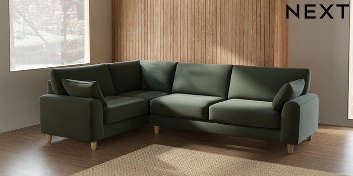 7.2.6 Buy Campbell Large Corner Sofa - Left Hand Relaxed Linen Look Dark Green High Leg - Light from the Next UK online shop Click here to use our accessible website