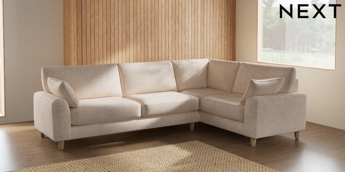 7.2.6 Buy Campbell Large Corner Sofa - Right Hand Boucle Chenille Oyster High Leg - Light from the Next UK online shop Click here to use our accessible website
