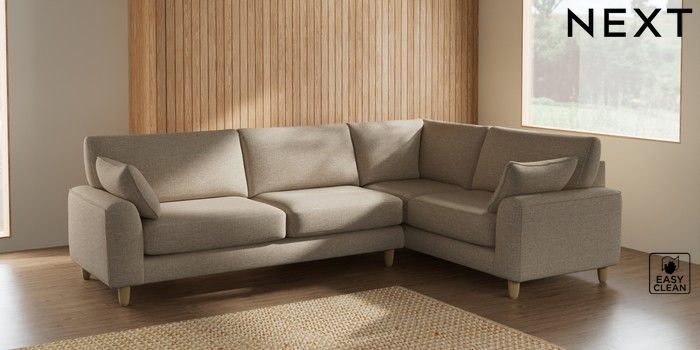 7.2.6 Buy Campbell Large Corner Sofa - Right Hand Boucle Weave Easy Clean Dark Natural High Leg - Light from the Next UK online shop Click here to use our accessible website