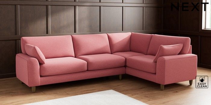 7.2.6 Buy Campbell Large Corner Sofa - Right Hand Fine Chenille Easy Clean Mid Pink High Leg - Mid from the Next UK online shop Click here to use our accessible website