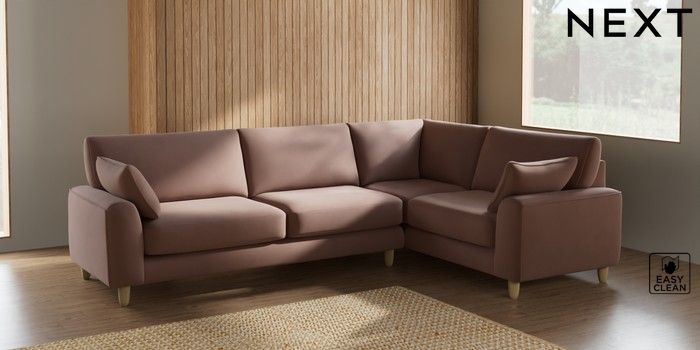 7.2.6 Buy Campbell Large Corner Sofa - Right Hand Plush Velvet Easy Clean Mid Natural High Leg - Light from the Next UK online shop Click here to use our accessible website