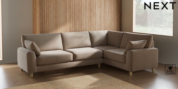 7.2.6 Buy Campbell Large Corner Sofa - Right Hand Tweedy Blend Easy Clean Light Dove Natural High Leg - Light from the Next UK online shop Click here to use our accessible website