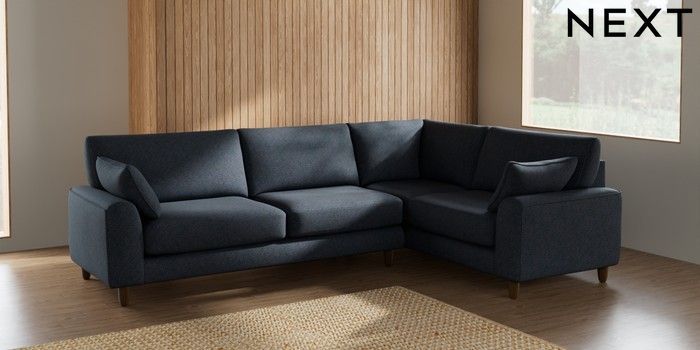 7.2.6 Buy Campbell Large Corner Sofa - Right Hand Tweedy Chenille Navy Blue High Leg - Mid from the Next UK online shop Click here to use our accessible website