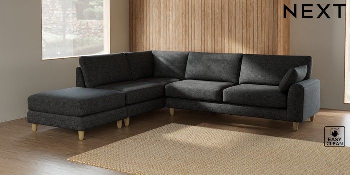 7.2.6 Buy Campbell Large Open End Corner Chaise - Left Hand Boucle Weave Easy Clean Charcoal Grey High Leg - Light from the Next UK online shop Click here to use our accessible website