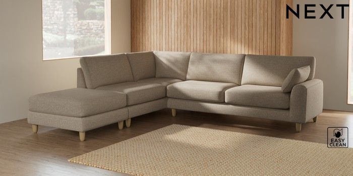 7.2.6 Buy Campbell Large Open End Corner Chaise - Left Hand Boucle Weave Easy Clean Dark Natural High Leg - Light from the Next UK online shop Click here to use our accessible website