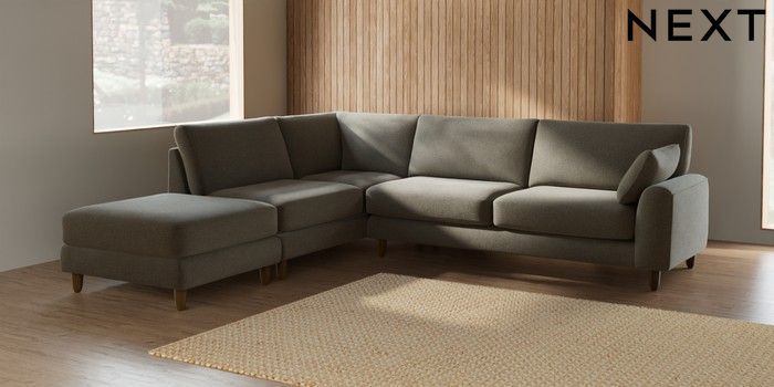 7.2.6 Buy Campbell Large Open End Corner Chaise - Left Hand Chunky Marl Light Olive Green High Leg - Mid from the Next UK online shop Click here to use our accessible website