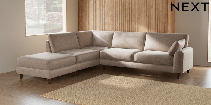 7.2.6 Buy Campbell Large Open End Corner Chaise - Left Hand Cotswold Chenille Light Natural High Leg - Mid from the Next UK online shop Click here to use our accessible website