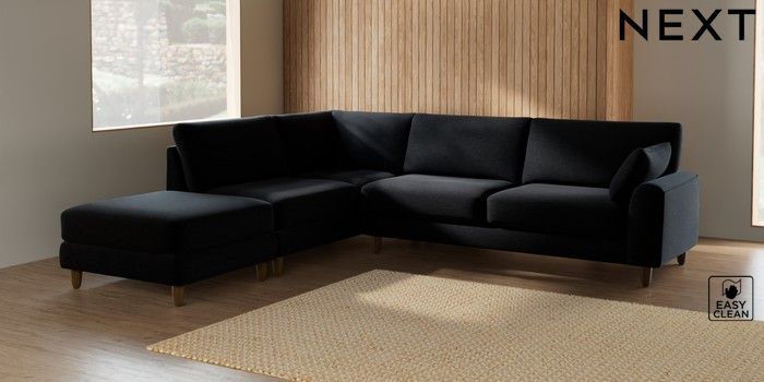 7.2.6 Buy Campbell Large Open End Corner Chaise - Left Hand Fine Chenille Easy Clean Black High Leg - Mid from the Next UK online shop Click here to use our accessible website