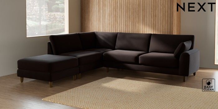 7.2.6 Buy Campbell Large Open End Corner Chaise - Left Hand Fine Chenille Easy Clean Chocolate Brown High Leg - Mid from the Next UK online shop Click here to use our accessible website