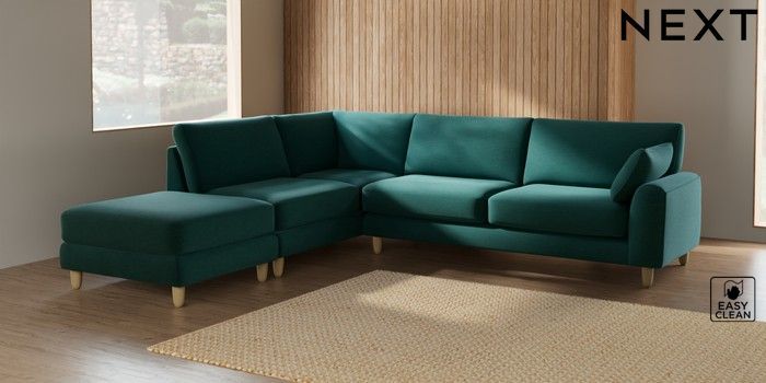 7.2.6 Buy Campbell Large Open End Corner Chaise - Left Hand Fine Chenille Easy Clean Dark Juniper Green High Leg - Light from the Next UK online shop Click here to use our accessible website