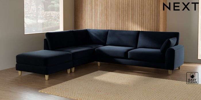 7.2.6 Buy Campbell Large Open End Corner Chaise - Left Hand Fine Chenille Easy Clean Dark Navy Blue High Leg - Light from the Next UK online shop Click here to use our accessible website