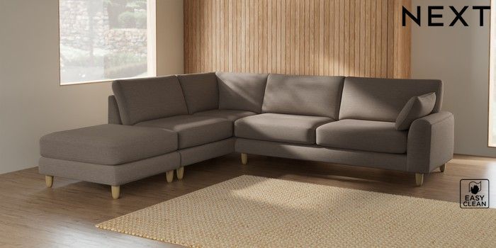 7.2.6 Buy Campbell Large Open End Corner Chaise - Left Hand Fine Chenille Easy Clean Mid Taupe Brown High Leg - Light from the Next UK online shop Click here to use our accessible website