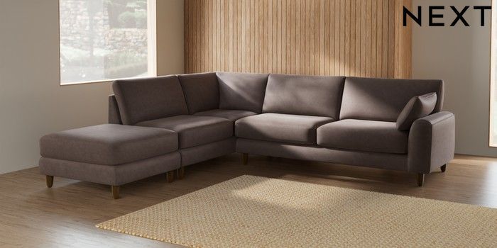 7.2.6 Buy Campbell Large Open End Corner Chaise - Left Hand Luxe Chenille Mink Brown High Leg - Mid from the Next UK online shop Click here to use our accessible website