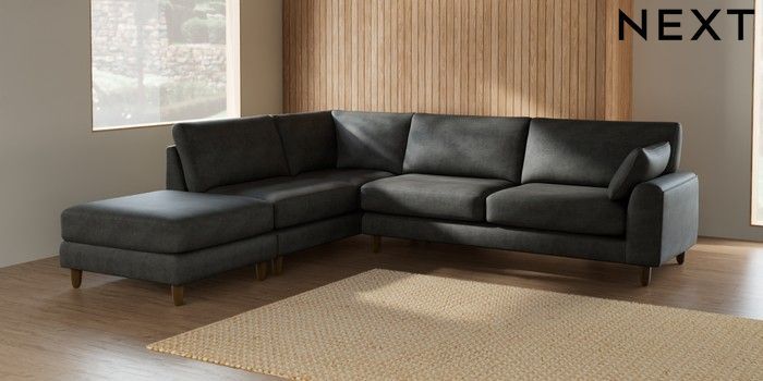 7.2.6 Buy Campbell Large Open End Corner Chaise - Left Hand Monza Faux Leather Easy Clean Dark Grey High Leg - Mid from the Next UK online shop Click here to use our accessible website