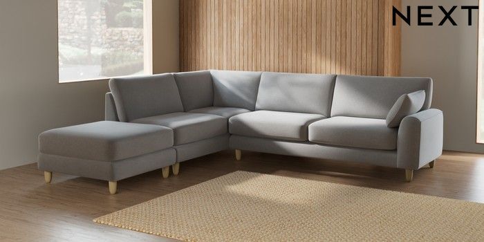 7.2.6 Buy Campbell Large Open End Corner Chaise - Left Hand Natural Mix Light Grey High Leg - Light from the Next UK online shop Click here to use our accessible website