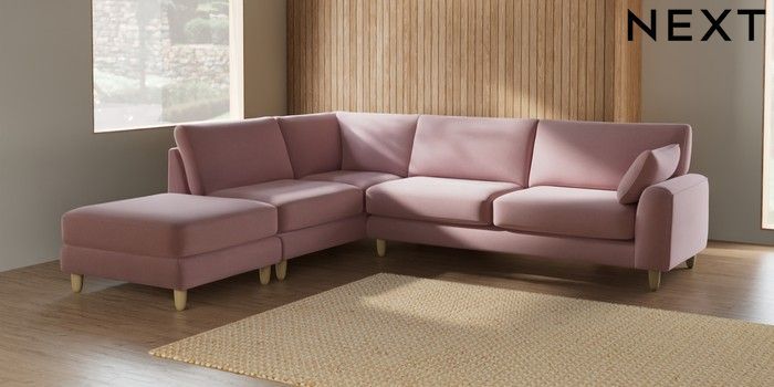 7.2.6 Buy Campbell Large Open End Corner Chaise - Left Hand Natural Mix Light Rose Pink High Leg - Light from the Next UK online shop Click here to use our accessible website