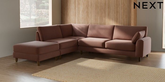 7.2.6 Buy Campbell Large Open End Corner Chaise - Left Hand Relaxed Linen Look Light Rust Brown High Leg - Mid from the Next UK online shop Click here to use our accessible website