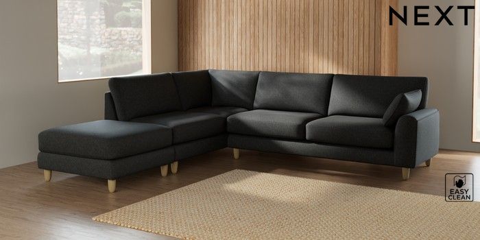 7.2.6 Buy Campbell Large Open End Corner Chaise - Left Hand Tweedy Blend Easy Clean Charcoal Grey High Leg - Light from the Next UK online shop Click here to use our accessible website