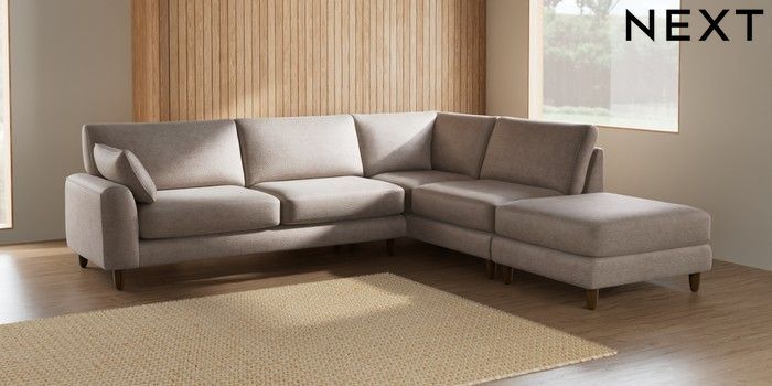 7.2.6 Buy Campbell Large Open End Corner Chaise - Right Hand Boucle Chenille Light Natural High Leg - Mid from the Next UK online shop Click here to use our accessible website