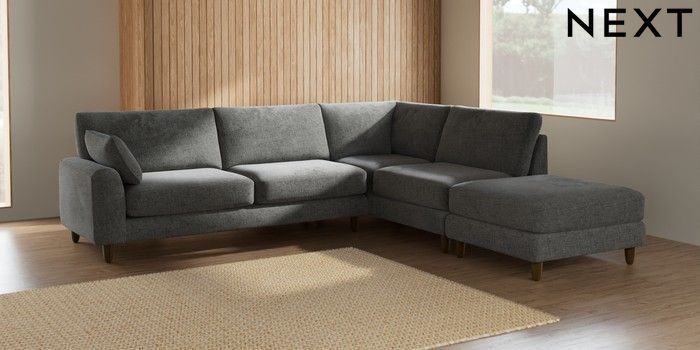 7.2.6 Buy Campbell Large Open End Corner Chaise - Right Hand Chunky Chenille Dark Grey High Leg - Mid from the Next UK online shop Click here to use our accessible website