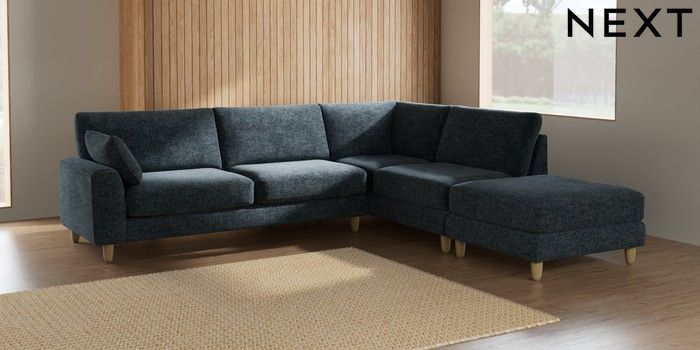 7.2.6 Buy Campbell Large Open End Corner Chaise - Right Hand Chunky Chenille Dark Navy Blue High Leg - Light from the Next UK online shop Click here to use our accessible website