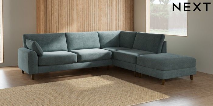 7.2.6 Buy Campbell Large Open End Corner Chaise - Right Hand Chunky Chenille Light Teal Green High Leg - Mid from the Next UK online shop Click here to use our accessible website