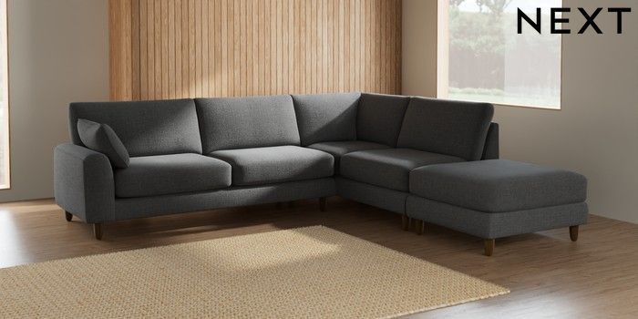 7.2.6 Buy Campbell Large Open End Corner Chaise - Right Hand Chunky Texture Dark Grey High Leg - Mid from the Next UK online shop Click here to use our accessible website