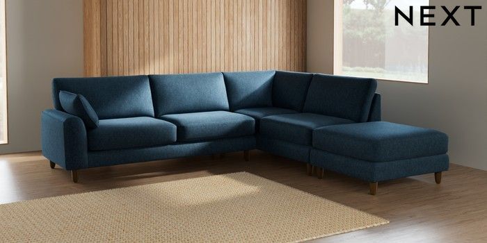 7.2.6 Buy Campbell Large Open End Corner Chaise - Right Hand Cotswold Chenille Dark Blue High Leg - Mid from the Next UK online shop Click here to use our accessible website