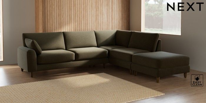 7.2.6 Buy Campbell Large Open End Corner Chaise - Right Hand Fine Chenille Easy Clean Dark Moss Green High Leg - Mid from the Next UK online shop Click here to use our accessible website