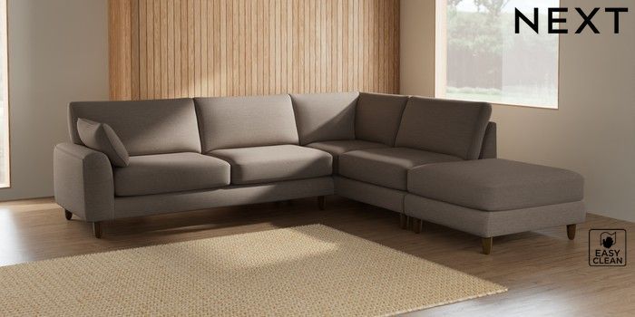 7.2.6 Buy Campbell Large Open End Corner Chaise - Right Hand Fine Chenille Easy Clean Mid Taupe Brown High Leg - Mid from the Next UK online shop Click here to use our accessible website