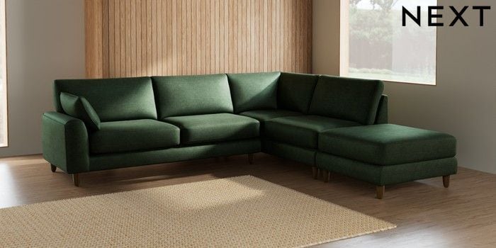 7.2.6 Buy Campbell Large Open End Corner Chaise - Right Hand Luxe Chenille Dark Green High Leg - Mid from the Next UK online shop Click here to use our accessible website