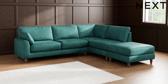 7.2.6 Buy Campbell Large Open End Corner Chaise - Right Hand Plush Chenille Dark Teal Green High Leg - Mid from the Next UK online shop Click here to use our accessible website