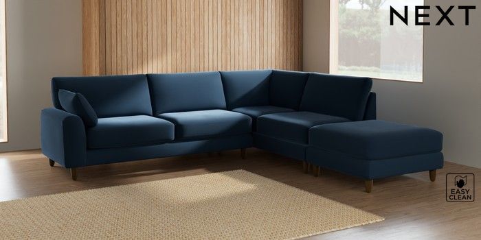 7.2.6 Buy Campbell Large Open End Corner Chaise - Right Hand Plush Velvet Easy Clean Airforce Blue High Leg - Mid from the Next UK online shop Click here to use our accessible website