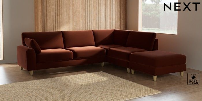 7.2.6 Buy Campbell Large Open End Corner Chaise - Right Hand Plush Velvet Easy Clean Ginger Orange High Leg - Light from the Next UK online shop Click here to use our accessible website