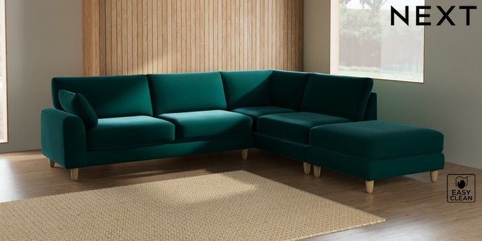 7.2.6 Buy Campbell Large Open End Corner Chaise - Right Hand Plush Velvet Easy Clean Juniper Green High Leg - Light from the Next UK online shop Click here to use our accessible website