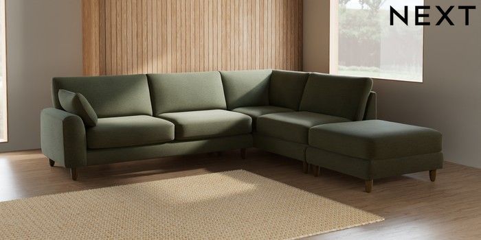 7.2.6 Buy Campbell Large Open End Corner Chaise - Right Hand Ripple Chenille Mid Moss Green High Leg - Mid from the Next UK online shop Click here to use our accessible website